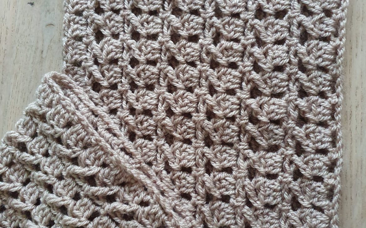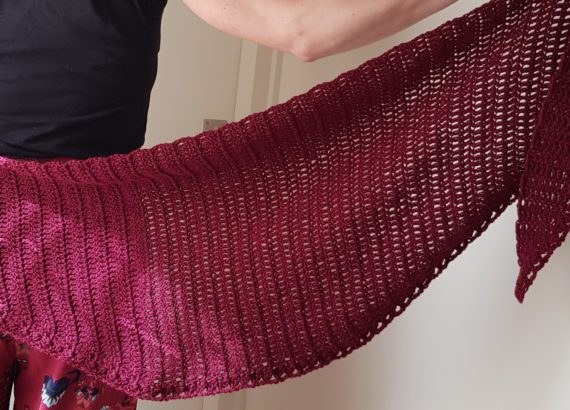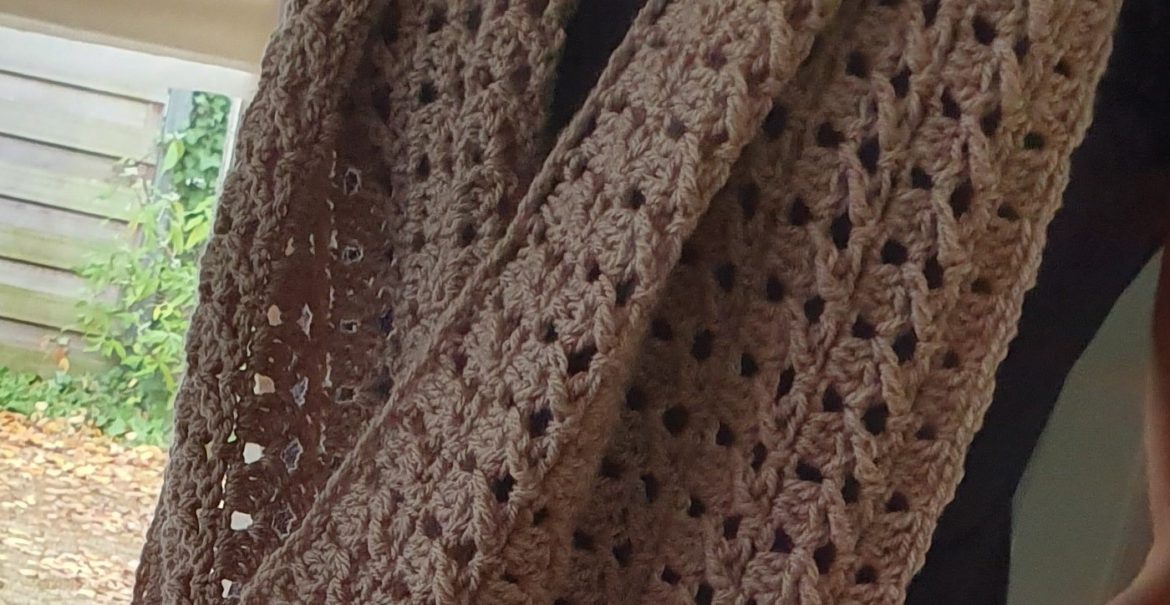 Start: Ch in multiples of 3. Make a chain that is as long as your arms spread. For me that is about 60”. Make sure your chain isn’t twisted and close the chain with a sl st.